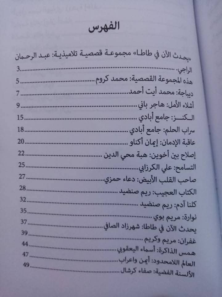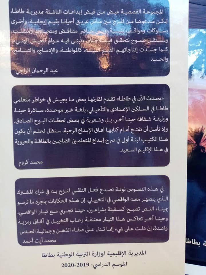 المساهمة في تأطير المجموعة القصصية من إبداع تلاميذ وتلميذات طاطا Post last modified:سبتمبر 9, 2025 محمد ايت احمد د. محمد ايت احمد - أستاذ باحث في تحليل الخطاب والسرد ومهتم بقضايا التربية وتدريسية اللغة العربية وآدابها You Might Also Like صور: جانب من مشاركتنا في فعاليات المعرض الجهوي للكتاب بإنزكان 2025… الفضاء: مركز تاوسنا للدراسات والأبحاث.. في معرض القراءة والتقديم لكتاب “الروائع” للأستاذة غزلان العيادي. نوفمبر 3, 2025 مشاركتنا في الندوة الوطنية: المرأة المغربية والترجمة-المركز الجهوي لمهن التربية والتكوين بمراكش … سبتمبر 9, 2025 حانب من المشاركة في المؤتمر الدولي: الكتابة والسجن … سبتمبر 9, 2025